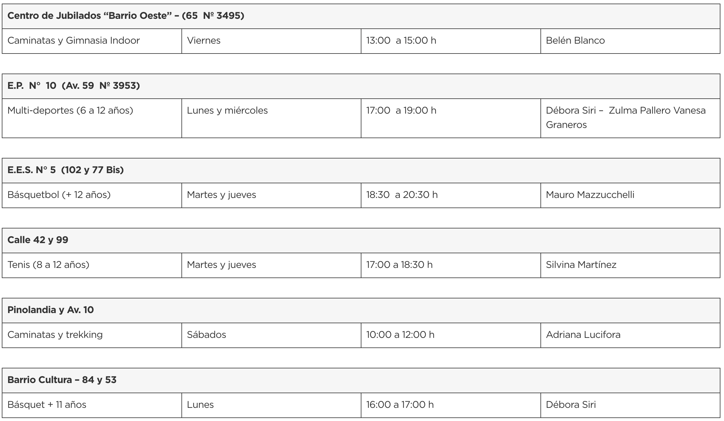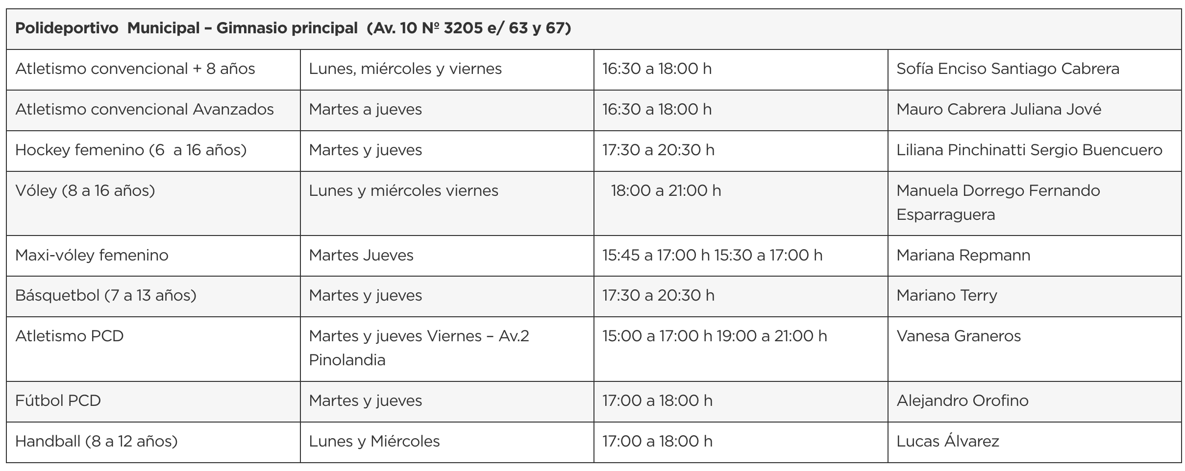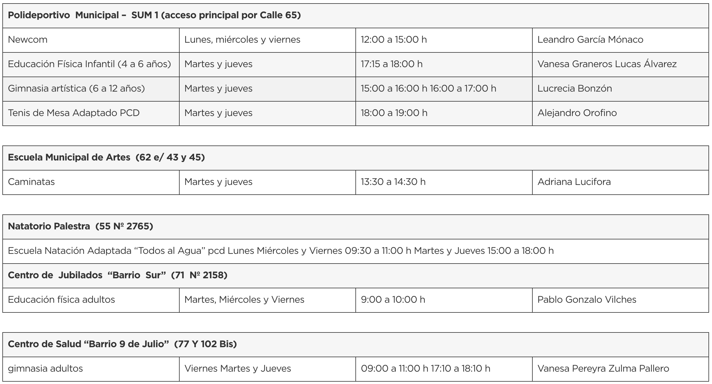 - Dirección: Calle 65 entre 10 y 6 Polideportivo Municipal. Necochea
